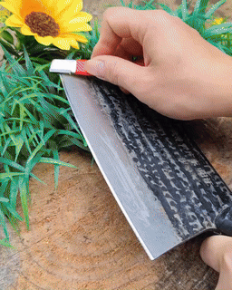 【Easy to Use】--Stroke the two sides of the knife with a garden knife sharpener. After the knife is sharpened, wipe its surface with a damp cloth, and clean the tungsten steel alloy of the shear sharpener with a soft brush to keep it clean. (It is recommended to use it once a week to keep your blades sharp.)